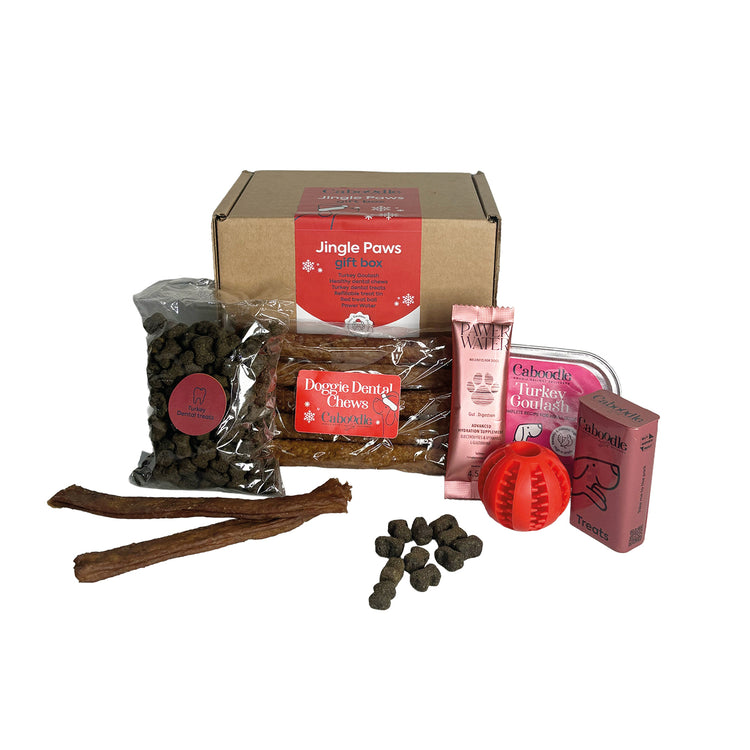Give your dog the ultimate gift of health and happiness this Christmas with our Jingle Paws Gift Box - a premium festive collection packed with nourishment, fun, and wellness.