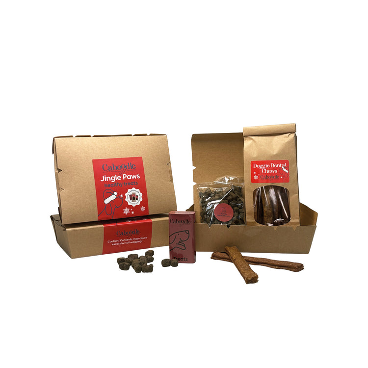 A perfect surprise for your dog’s stocking, with healthy festive treats and chews and our favourite planet-friendly treat tin.