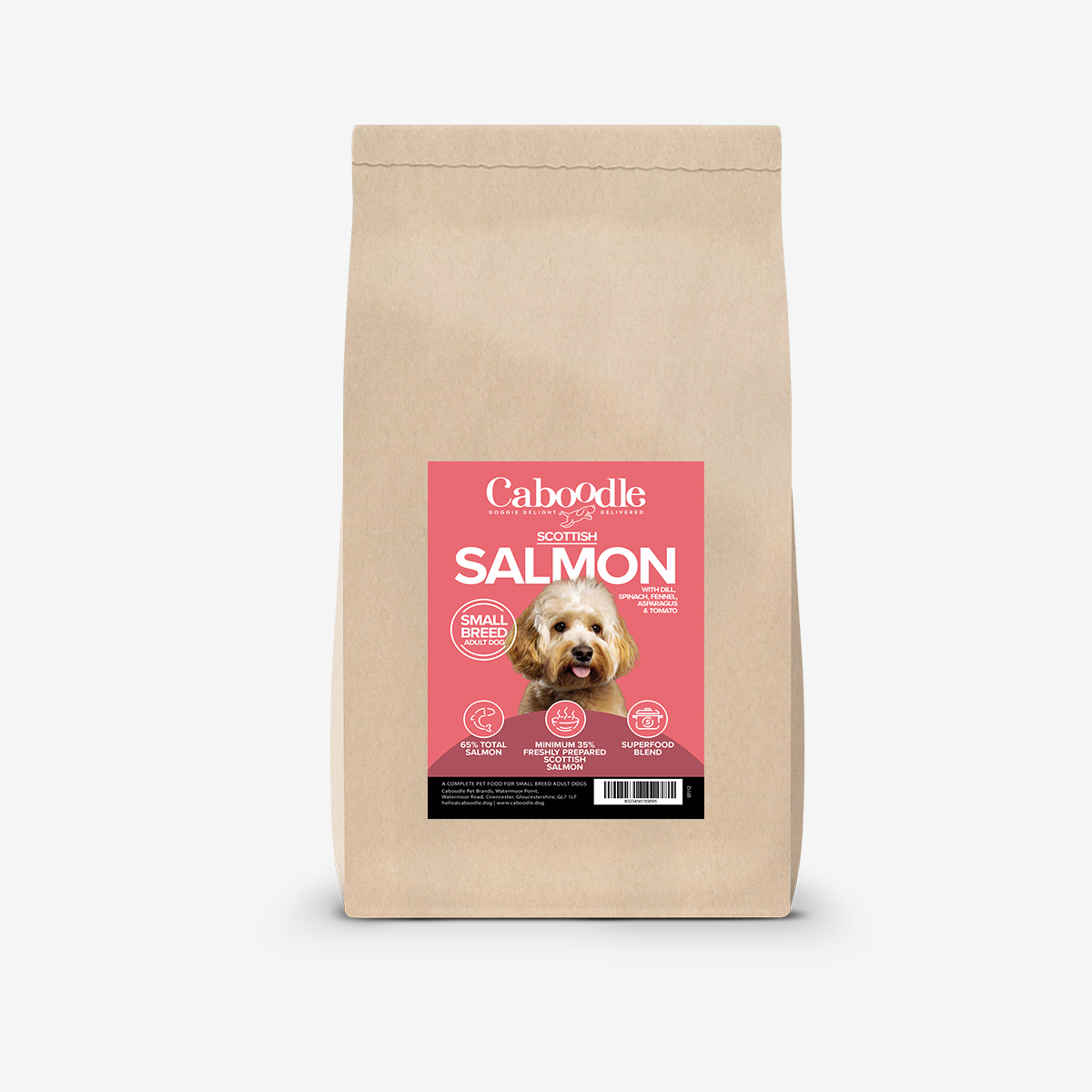 Ingredients: 65% Salmon (35% Freshly Prepared Salmon, 23% Dried Salmon, 4% Salmon Oil & 3% Salmon Stock), Sweet Potato, Beans, Beet Pulp, Dried Superfood Blend* (Including Dill, Spinach, Fennel, Asparagus, Tomato), Omega 3 Supplement, Minerals, Vitamins, Fructooligosaccharides (192 mg/kg), Mannanoligosaccharides (48 mg/kg), Olive Extract (0 01%).